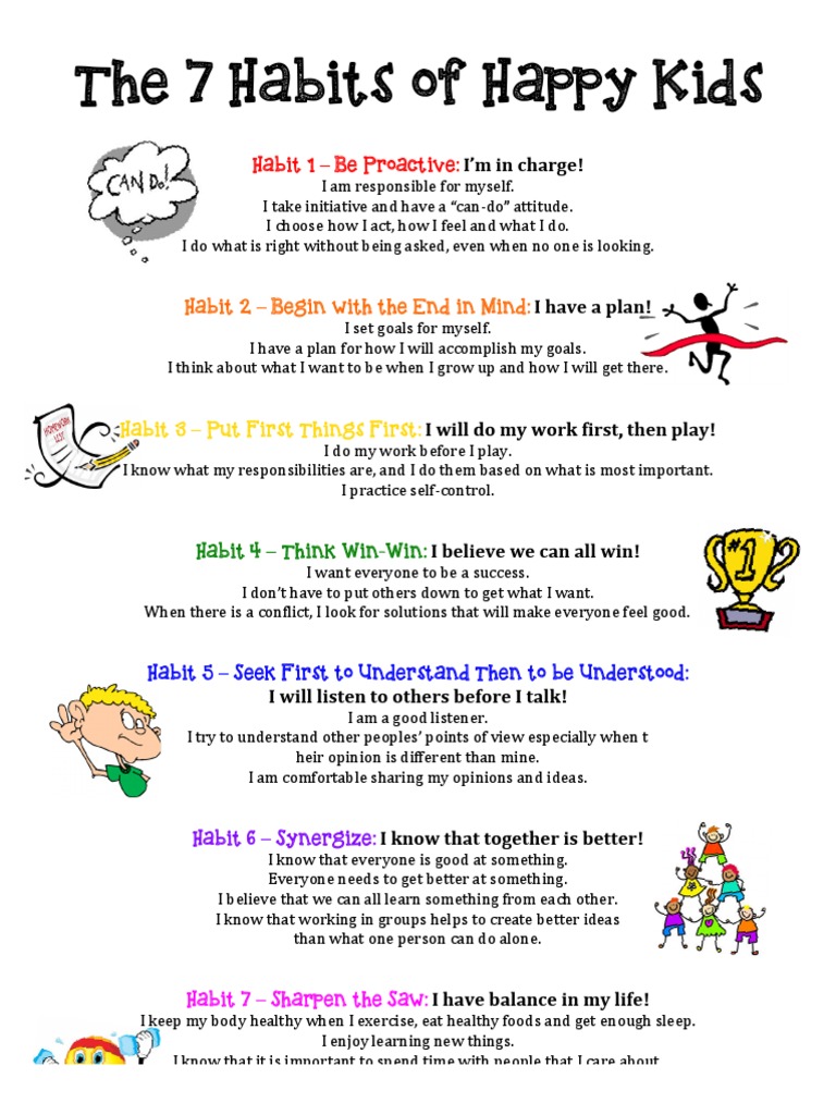 Adventures in Art: 7 Habits of Happy Kids! | 7 habits ... from i.pinimg.com Little one (3.5) loves the pictures and is learning lots of new words, big sis (6) understands the concepts but does not find them too obvious or the book too scholastic which is great. Parents, teach them these and raise happy, healthy kids. 95% of people do not wash their hands properly after using the restroom? When reviewing the principles outlined in the first habit encourages children to be proactive, taking the lead and making the best of any situation. If you print a lot of printables and spend time coloring, gluing and adding some extra jazz to them, our list of supplies can help! The 7 habits for kids. 55+ kindness activities for kids. 7 habits for kids printables.